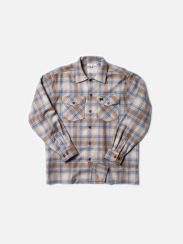 Outdoor shirt crafted in a plaid check made with recycled wool and polyester. Relaxed fit. Size & Fit Model is wearing size: M Model's height: 185 cm / 6’0'' Details - Recycled wool - Recycled polyester - External logo label - Corozo buttons - Relaxed fit PL 20%, Wool 75%, AF 5% Made in TR Shirt crafted in a plaid check with warm, earthy shades lit up by a clear blue. The weave mixes recycled wool and polyamide, giving us a sturdy, outdoorsy quality with a rough texture and dry hand feel. The sleeves are lined with recycled polyester lining. When you buy this shirt, you can be sure we have paid our share of living wages for it.