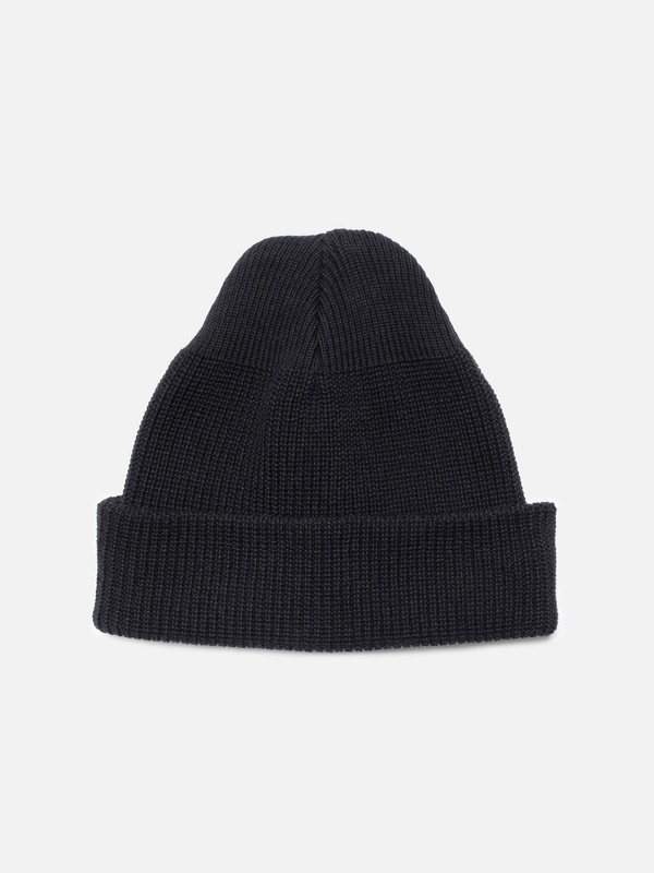 Fold-up beanie made in organic cotton rib-knit. One size. Details - Organic cotton - 1x1 rib - Double knit - External logo label - One size 100% Cotton Made in LV Double, fold-up beanie made in organic cotton rib-knit with dry hand feel. The logo label is hidden inside the fold-up.