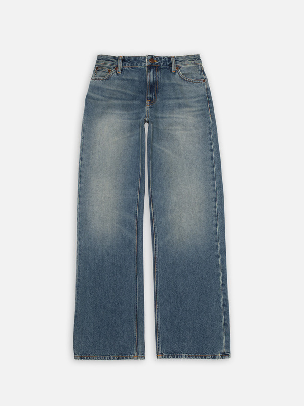 A loose, low-waist fit with a wide leg, expertly washed for a vintage-inspired aesthetic with sharp wear marks. The rich dark blue hues are enhanced by warm highlights, while the wash beautifully reveals the denim's texture. Flat-abrasion areas emphasize the yarn slubs, and the darker, unabraded sections showcase subtle marble patterns, adding depth and character to the fabric. Details - Regenerative Organic cotton - 13.3 oz. rigid denim - Tobacco thread at seams - Navy back pocket embroidery - Copper trims - Zip fly - Jacron patch - Loose fit - Low waist - Wide leg - Wide leg opening 100% Cotton Made in TN A loose, low-waist fit with a wide leg, expertly washed for a vintage-inspired aesthetic with sharp wear marks. The rich dark blue hues are enhanced by warm highlights, while the wash beautifully reveals the denim's texture. Flat-abrasion areas emphasize the yarn slubs, and the darker, unabraded sections showcase subtle marble patterns, adding depth and character to the fabric.