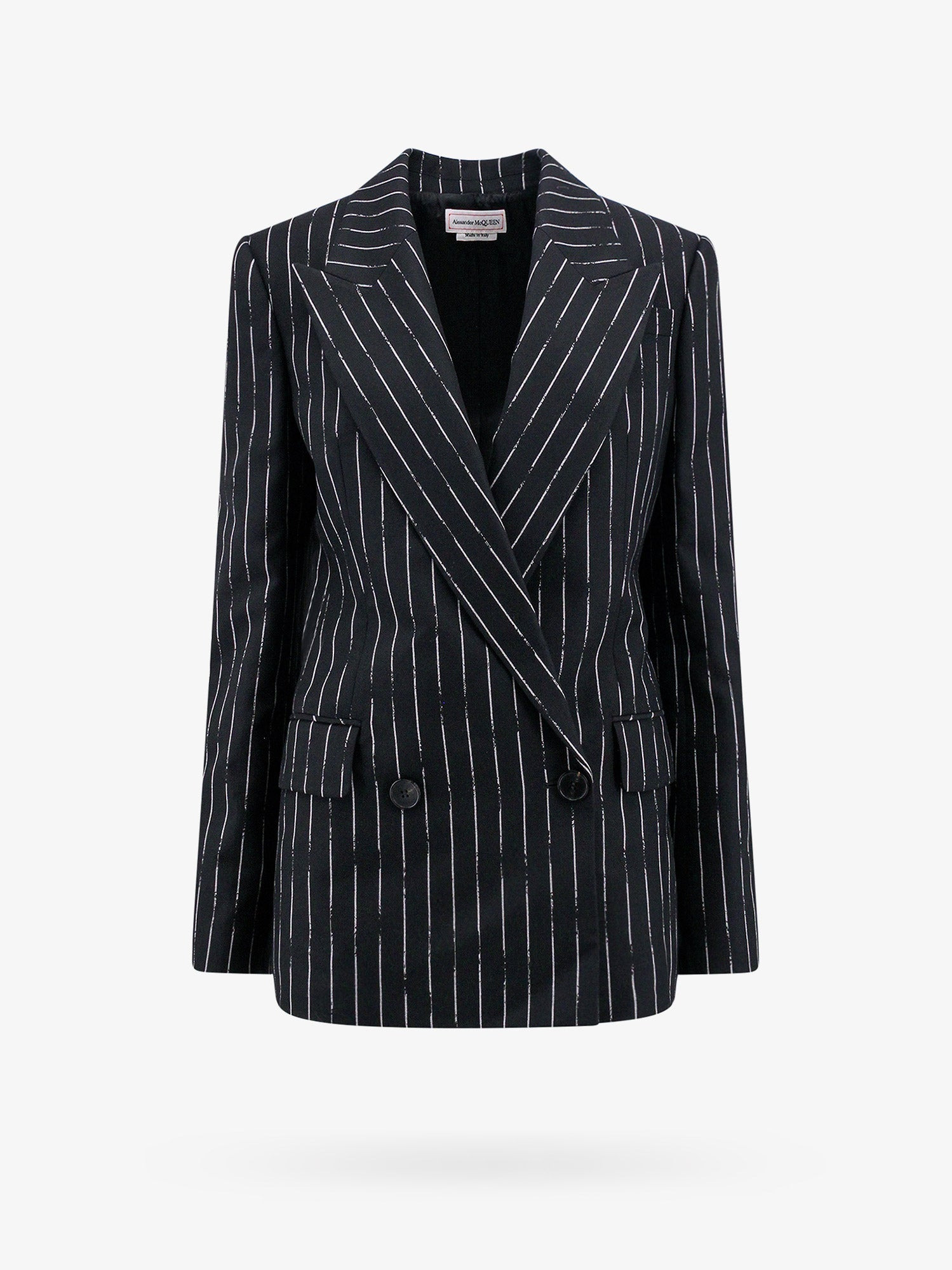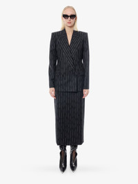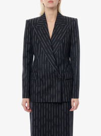 Women's Double-breasted Broken Pinstripe Jacket in Black/ivory