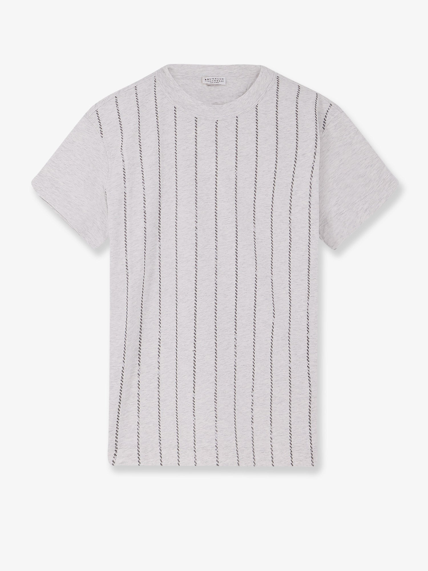 Cotton jersey T-shirt with dazzling chalk stripe embroidery