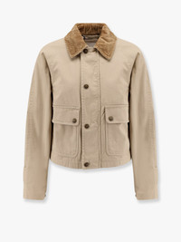 Corduroy-trimmed cotton-twill jacket Beige