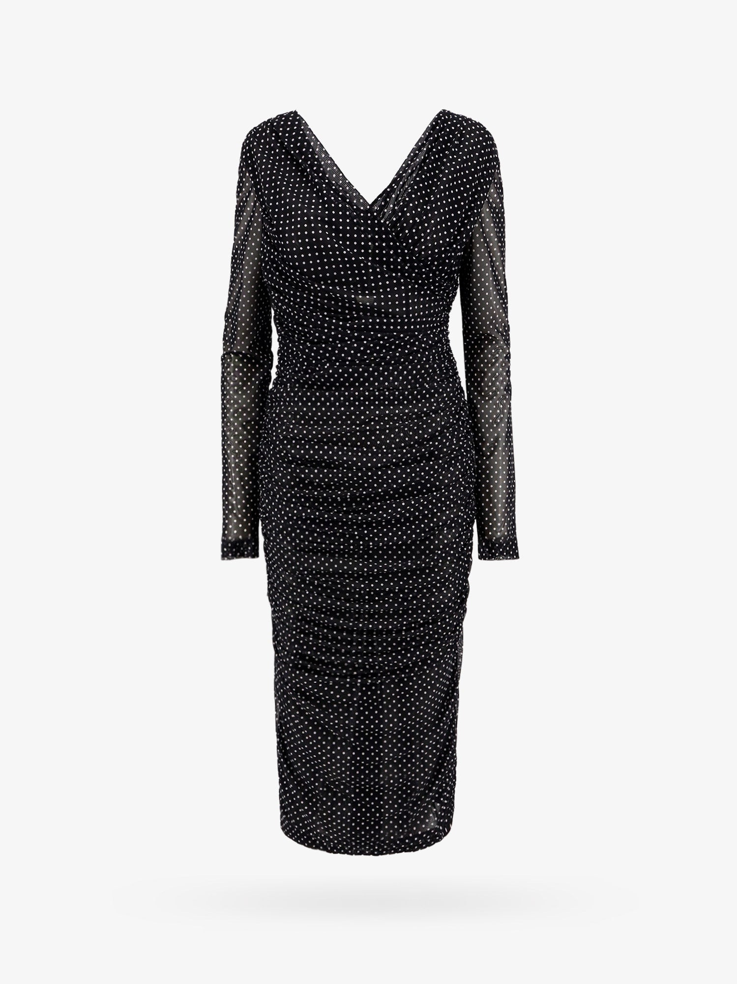 Tulle calf-length dress with draping and polka-dot print