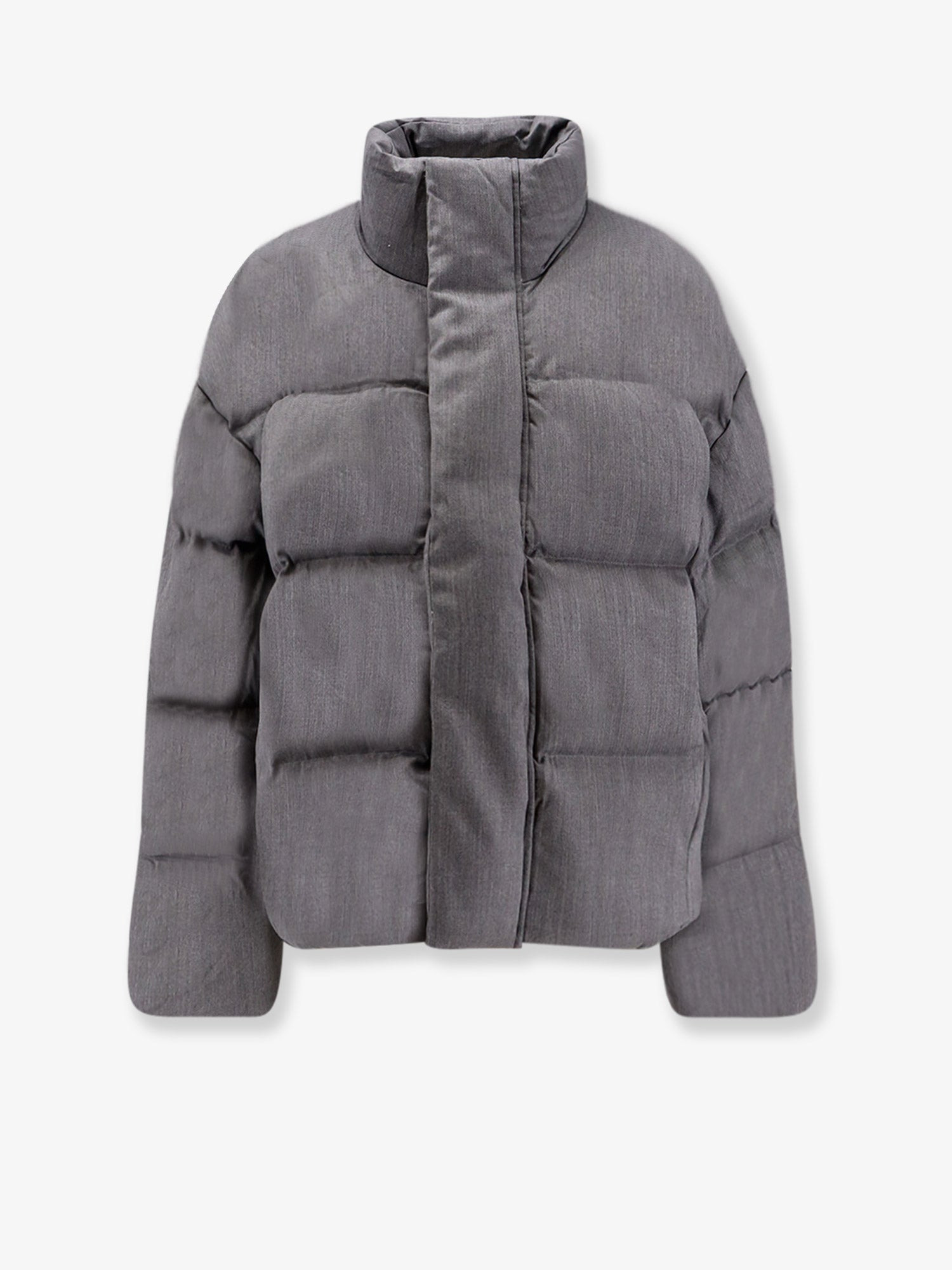 - Hidden zip closure with Velcro inserts - Padded stand-up collar - Side welt pockets - Ribbed knit cuffs - 100% wool - Padding: 90% down, 10% feather - SKU: ESUW251046GREY