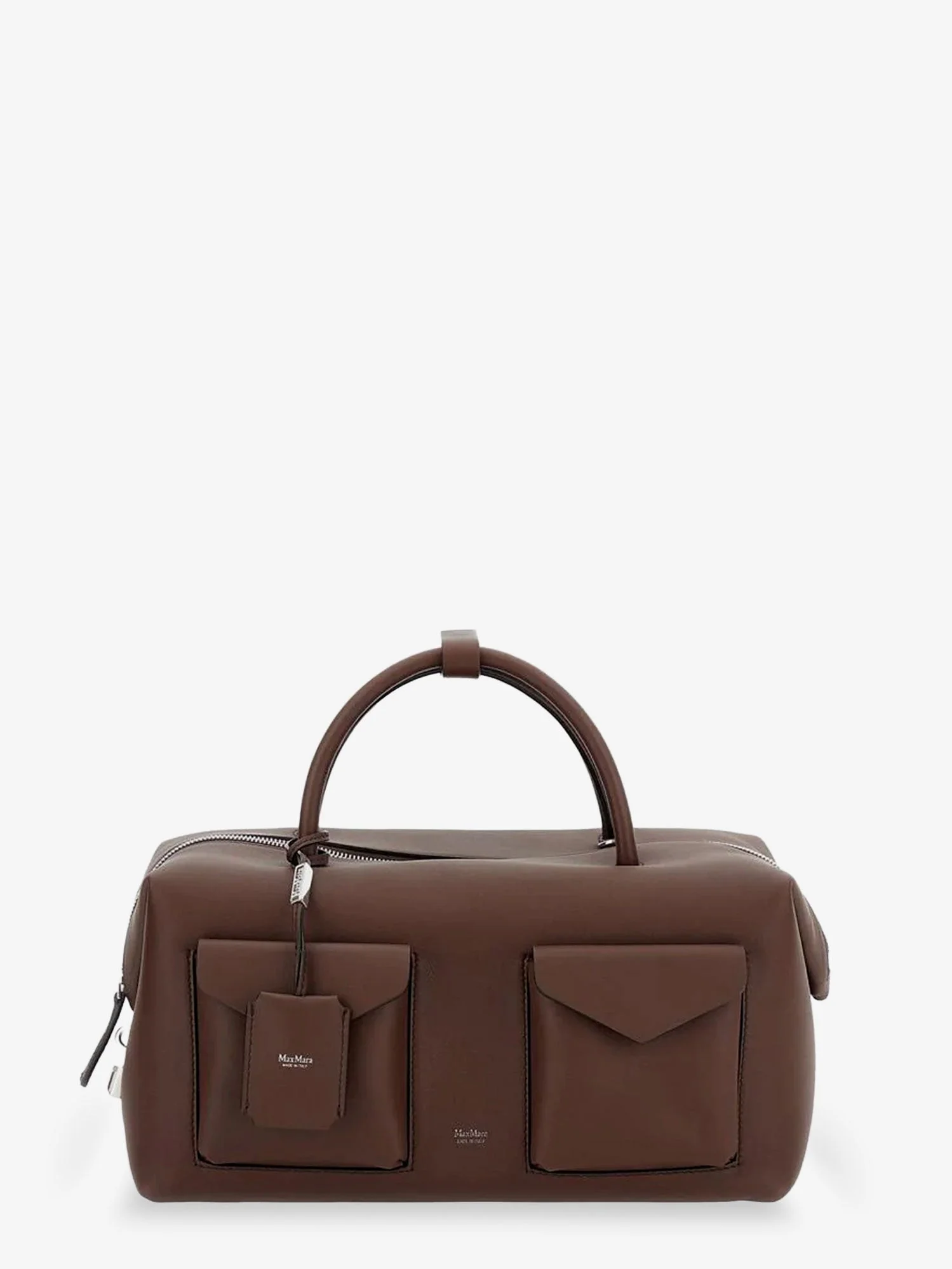 Large leather Boston bag with pockets - BROWN