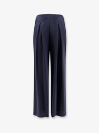 - Side zip closure - Elastic waistband - High-waisted with pleats - Two front pockets - Wide leg - Made in Italy - 91% silk 9% elastane - SKU: 2611131018600030