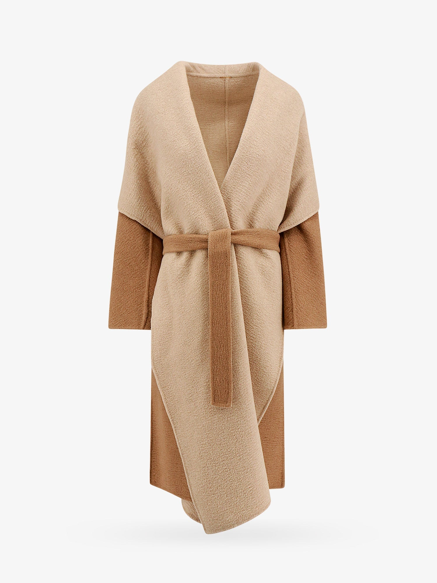 - SKU: 2310161035600_001 - Closure with belt shawl collar with hood maxi pockets on the front made in italy 100% camel