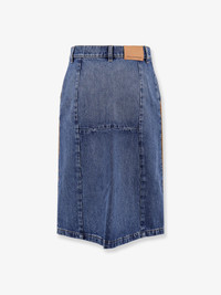 Blue & Tan Mixed Denim & Faux-Suede Midi Skirt