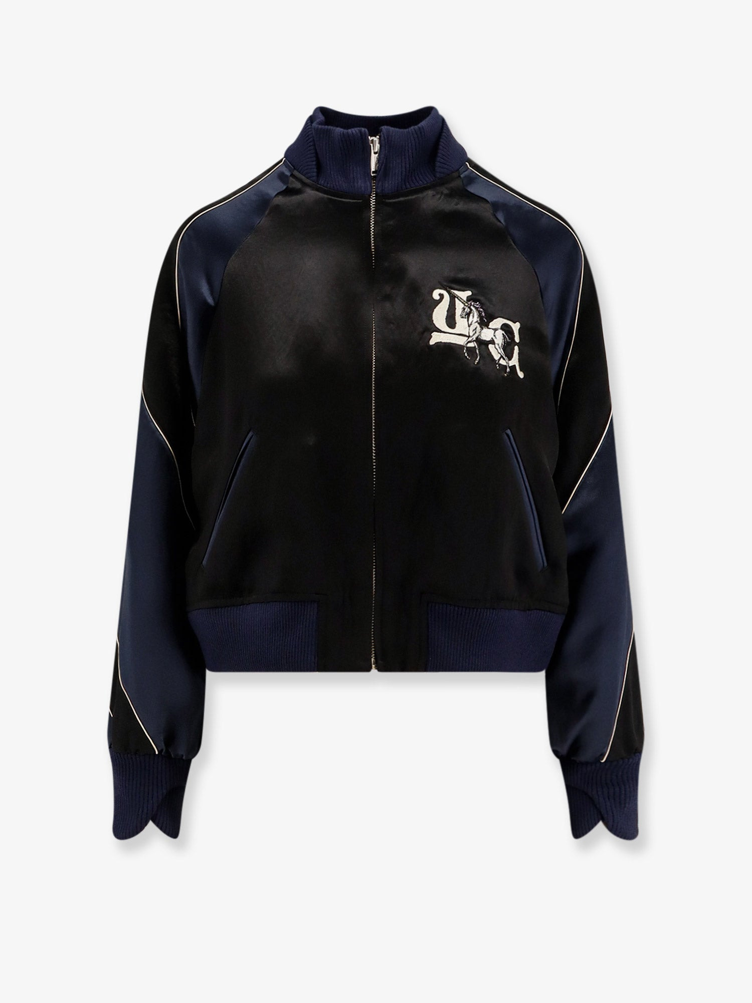 - Zip closure - Ribbed profiles - Slanted welt pockets - Logo embroidery on the front and back - 100% acetate - Lining: 100% cupro - SKU: UP2E1204BLACK