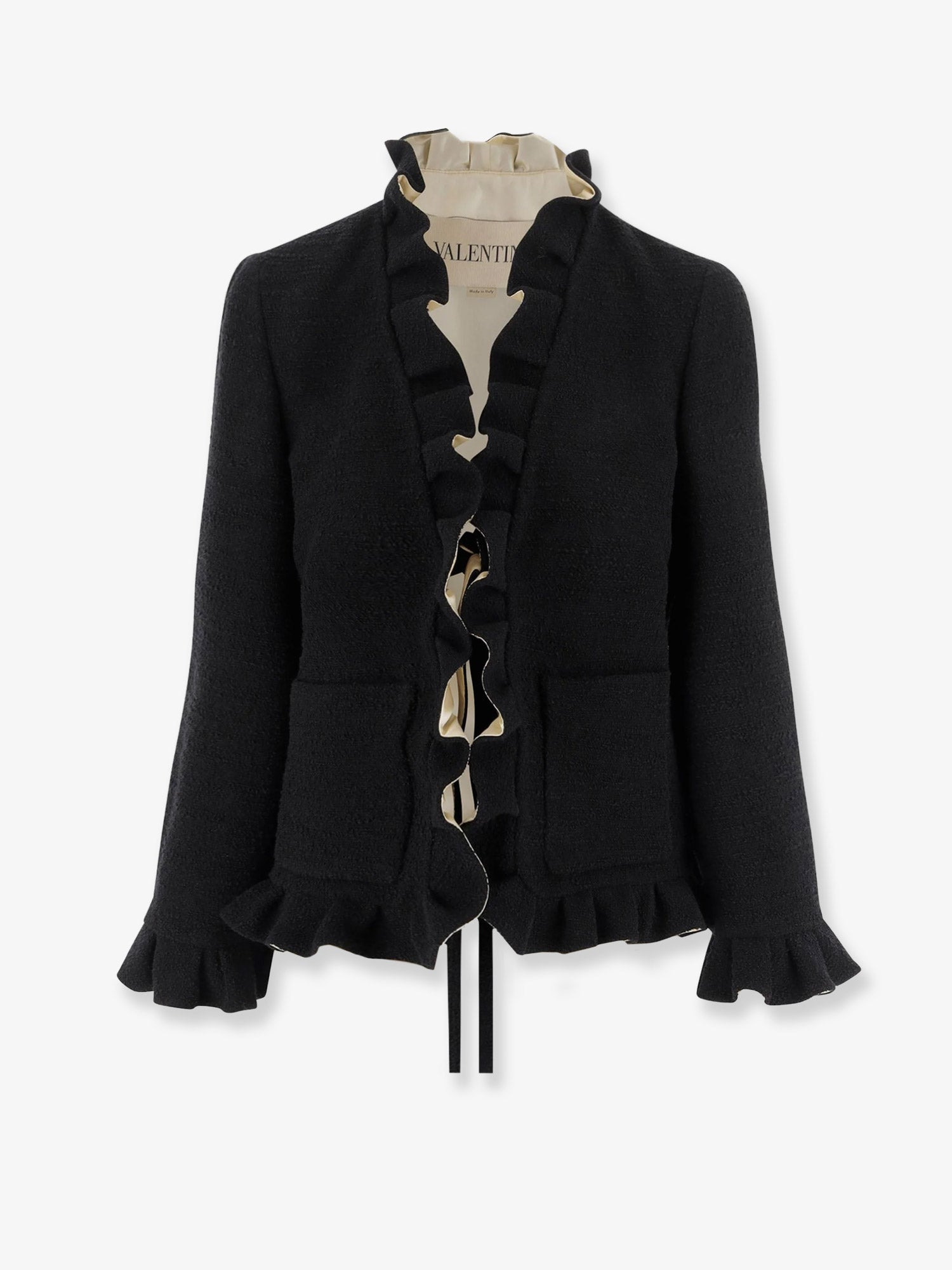 - Silk band closure - Ruffled profiles - Double patch pocket - Long sleeves with ruffles - Contrasting silk lining - Made in Italy - 100% silk - SKU: 7B3CE4M07LV0NO