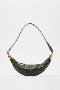 Leather banana bag with zip closure and single shoulder strap. Crafted from black leather, it features a curved shape reminiscent of a banana and gold metal details. DETAILS Color: Black External composition: 100% CALF LEATHER Product Code: 25IBP0987PR01N001 Made in Italy SIZE AND VESTIBILITY Dimensions: 28x17x8