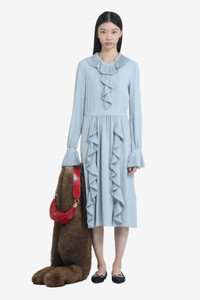 BELOW-THE-KNEE DRESS WITH RUFFLES AND PLEATED COLLAR