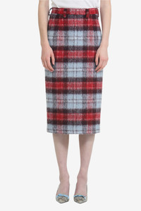 Checkered pencil skirt made of thick fabric with a checked pattern in shades of red, light blue, and brown. The fitted fit reaches just below the knee, with a belted waist and back zip closure. The streamlined design is suitable for both formal and casual looks. DETAILS Color: Blue/Red Frame Composition: 37% PC 30% PL 20% WO 11% WP 2% AF Product Code: 25IN2M0C0153042QDC1 Made in Italy SIZE AND VESTIBILITY The model wears size 40. The garment fits regular.
