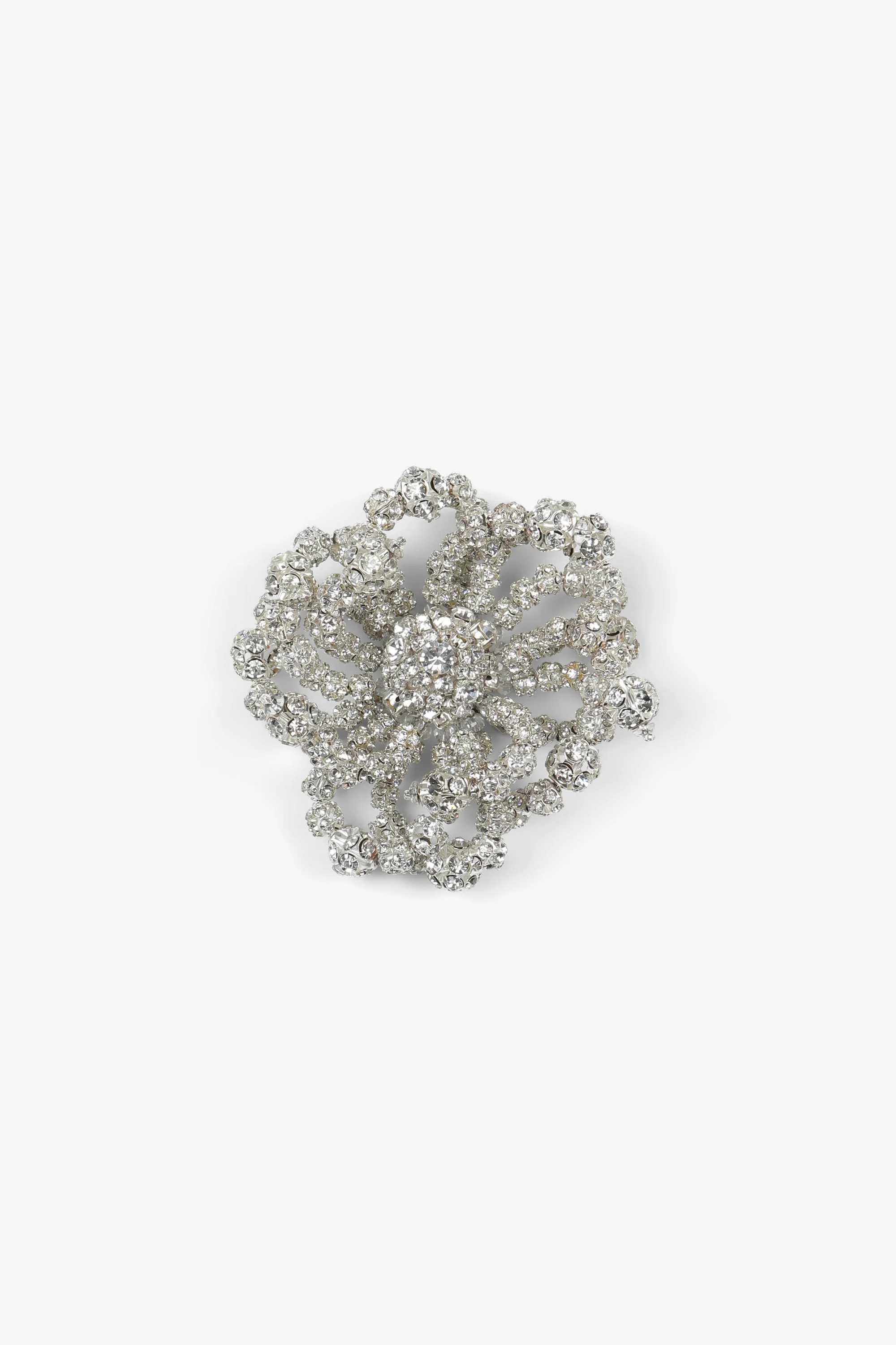 Large flower brooch in silver-tone metal. Clear crystals are arranged in a floral motif. The crystals are prong-set for a secure fit. DETAILS Color: Silver Composition: 70%VT 25%ZC 2%PVC 2%CO 1%PL Product Code: 26EN2C1744K6994M801 Made in India SIZE AND VESTIBILITY One size