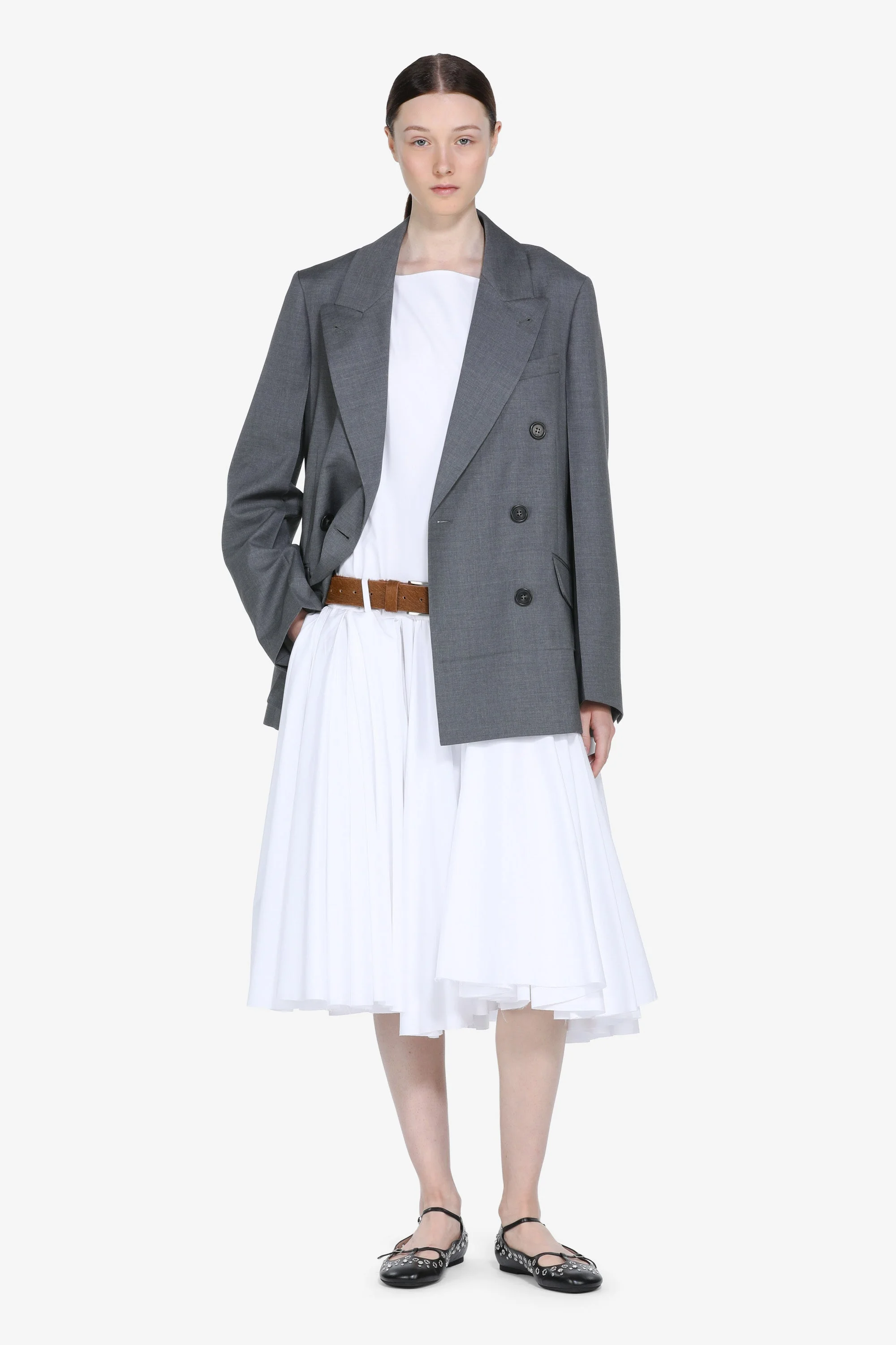 White midi dress with a pleated knee-length skirt. The fabric is lightweight and the construction is simple, with a straight cut and clean lines. The fit is regular, with understated finishes and essential details. DETAILS Color: Optical White Composition: 100%CO Product Code: 26EN2M0H08101871101 Made in Italy SIZE AND VESTIBILITY The model wears size 40 and is 179 cm tall. The boss fits regular.