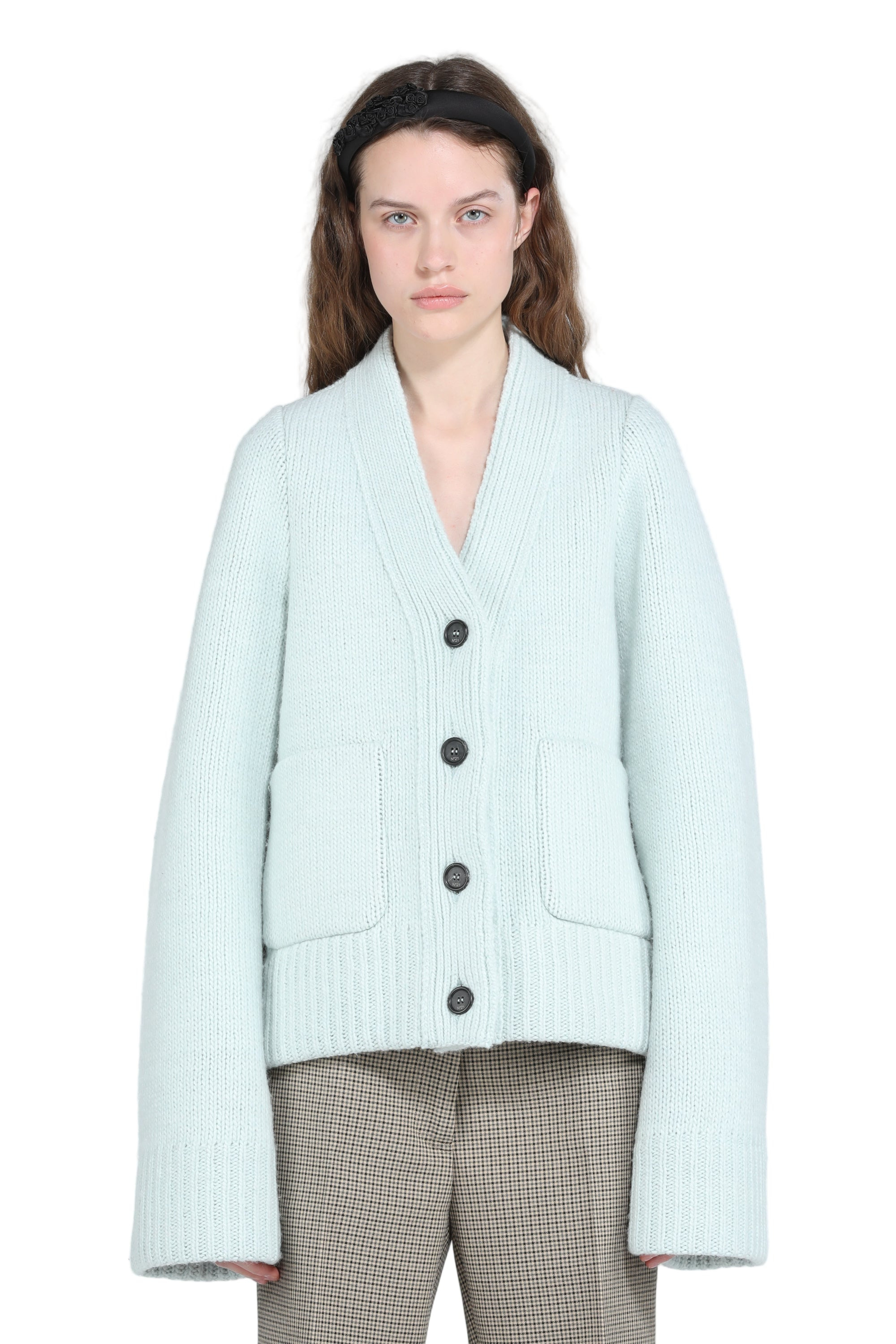 Oversized cardigan with pockets made of knitted fabric, available in a light shade. It features a loose and comfortable fit, long sleeves, and a front button closure. Patch pockets offer functionality and practicality, making this cardigan a versatile option for any occasion. The sturdy construction ensures durability, making it ideal for fall and winter. DETAILS Color: Mint Composition: 30%WO 28%VI 15%WP 15%PC 12%PU Product Code: 25IN2S0A02071125314 Made in Italy SIZE AND VESTIBILITY The model wears size 40. The item fits oversized.