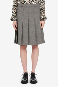 Knee-length pleated skirt in gray check fabric. The pleats are even and define an A-line silhouette. The waist has belt loops. DETAILS Color: Brown Beige Frame Composition: 58%WO 26%PL 8%PA 6%PC 2%EA Product Code: 26EN2C0C0423005Q2A1 Made in Italy SIZE AND VESTIBILITY The model wears size 40. The garment fits regular.