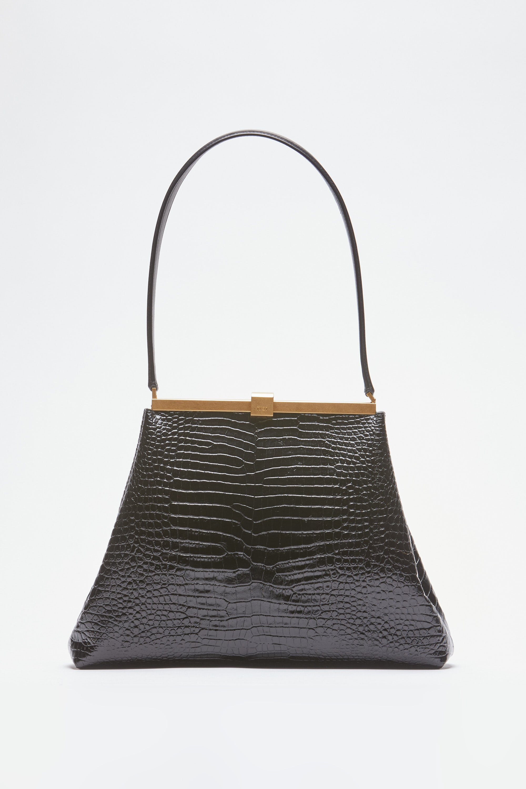 The Puffy Jeanne leather shoulder bag is crafted from leather with a crocodile-effect finish, giving it an elegant and sophisticated look. It features a long handle for comfortable shoulder carry and a spacious frame that offers plenty of space for everyday essentials. The metal closure adds a touch of style and security. DETAILS Color: Black External composition: 100% COW LEATHER Product Code: 25IBS0993CC01N001 Made in Italy SIZE AND VESTIBILITY Measurements: 21-33x25x8