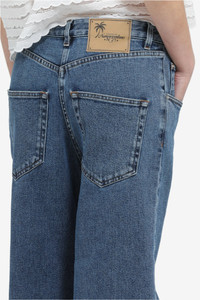 Wide-leg blue denim jeans with high waist and five pockets. Long hem with cuff. Zip and button closure. DETAILS Color: Indigo Composition: 98%CO 2%EA Product Code: 25IN2C0220100516001 SIZE AND VESTIBILITY The model wears size 26. The item fits oversized.