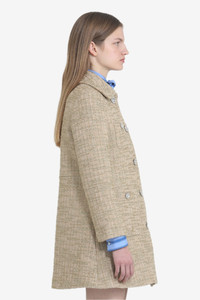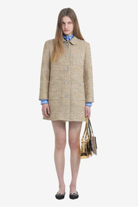 Short coat crafted from metallic tweed with a checked pattern, featuring a rounded collar and jeweled buttons on the front. The garment features a decorative button closure and four front patch pockets. The fit is clean, and the simple design highlights the button details and the fabric's structure. DETAILS Color: Yellow/Gold Composition: 30%CO 27%PM 26%PA 12%PC 3%PL 2%AF Product Code: 25IN2M0N0125260M301 Made in Italy SIZE AND VESTIBILITY The model wears size 40. The garment fits regular.