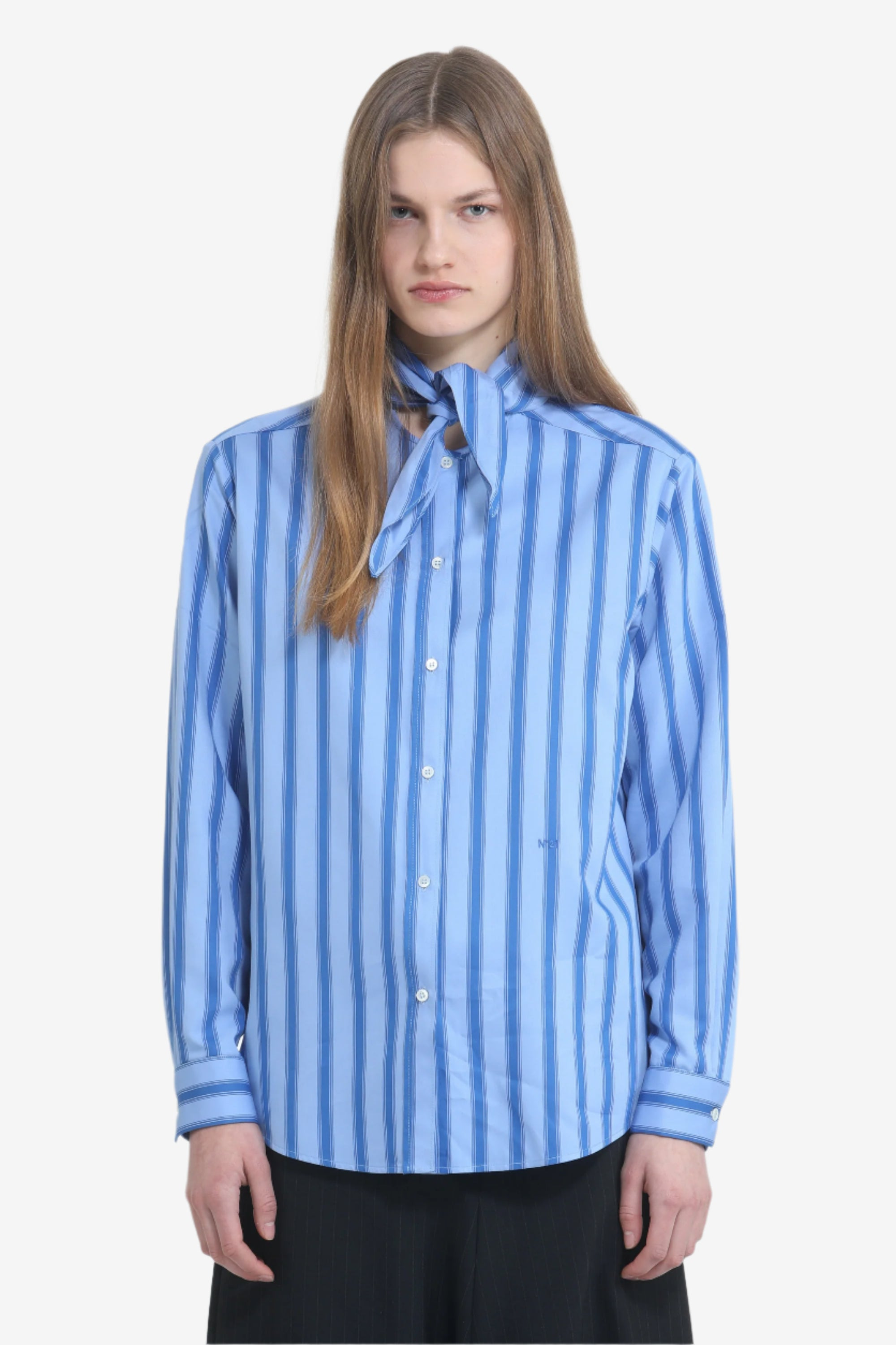 STRIPED SHIRT WITH BOW COLLAR