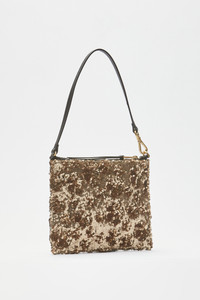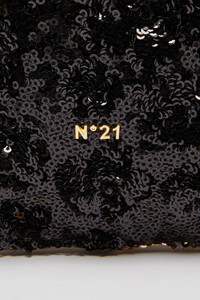 The two-tone sequin shoulder bag is crafted from two-tone sequin-covered fabric. It features a rectangular shape with a zip closure and a thin shoulder strap in smooth material with gold-tone metal details. DETAILS Color: Black External composition: 100% PL Product Code: 25IBP0990PL01N001 Made in Italy SIZE AND VESTIBILITY Dimensions: 23x17x2
