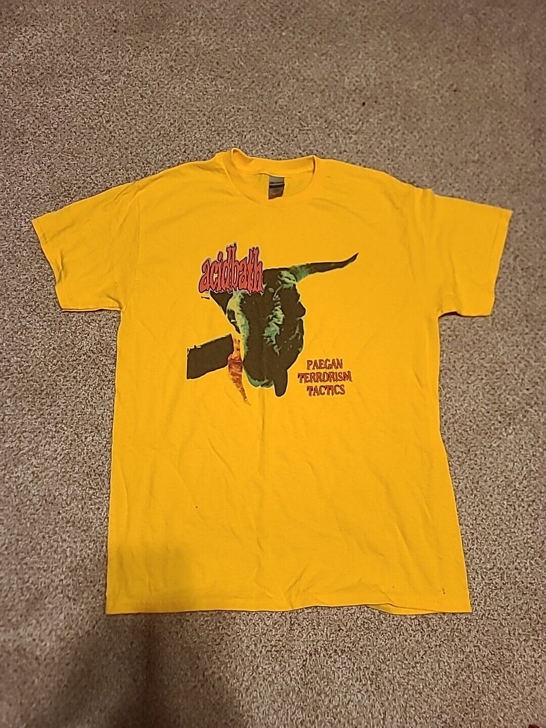 Description - The unisex heavy cotton tee US standart Size - Without side seams - Shoulder tape - Ribbed knit collar without seam - Solid colors are 100% cotton - Gildan brand - The screen printing on the t-shirt absorbs strongly, does not fade or break easily - Item is New and Never Worn - Item Location in USA and Shipp from USA Shipping: Item Shipp From US to US Buyers (No Fees) Just 4-5 Bussines days after 1-2 days Handling time USPS (Tracking number available) for USA Country And DHL,4PX, Canada post, and Others for Europe & Asian Country. (Tracking number available) Don't hesitate to prove the quality of our products Thank You #acidbath #paegan #band #rare #vintagetee