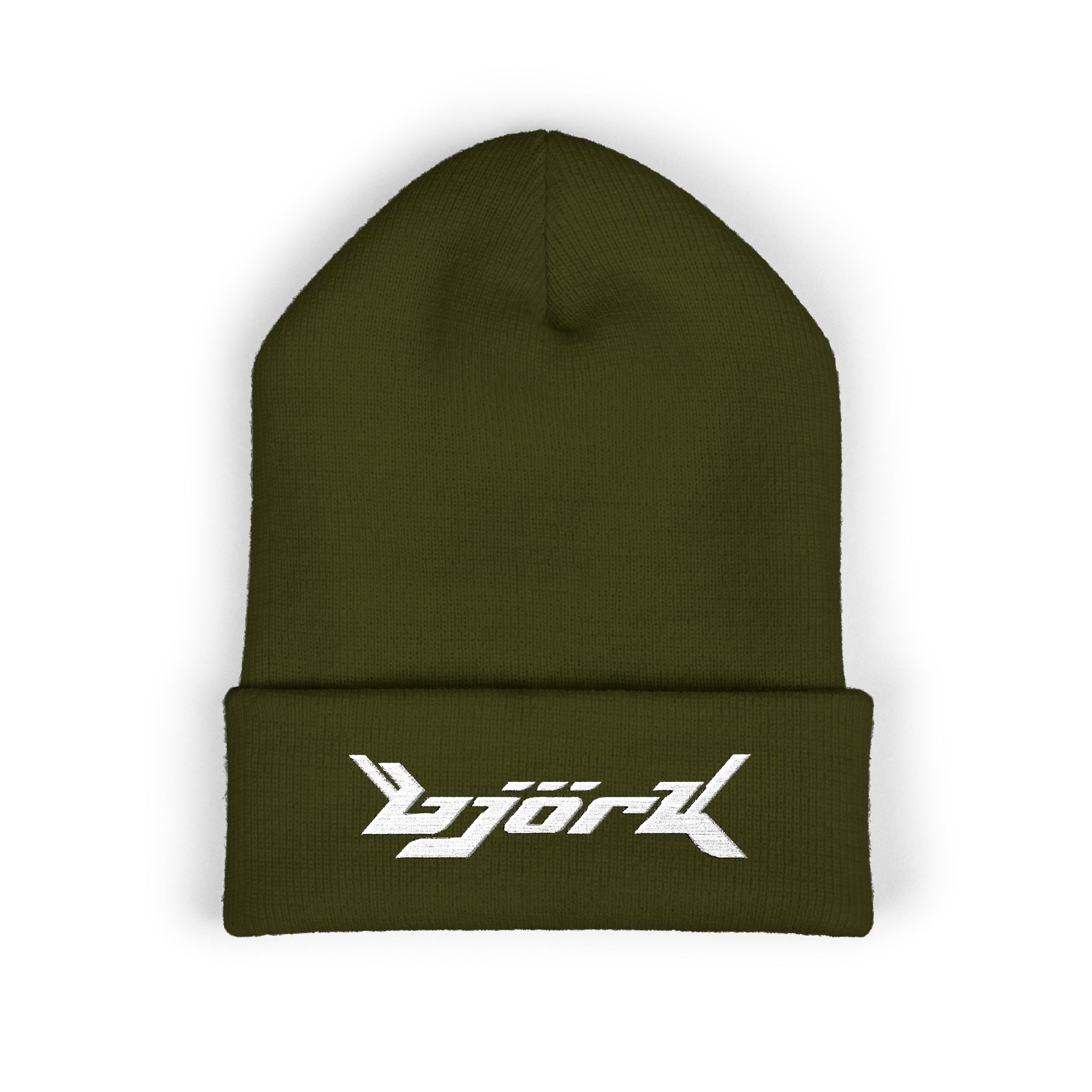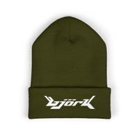 Vintage Style BJORK Promo Music Tour Olive With White Embroidered Beanie Hat Yupoong