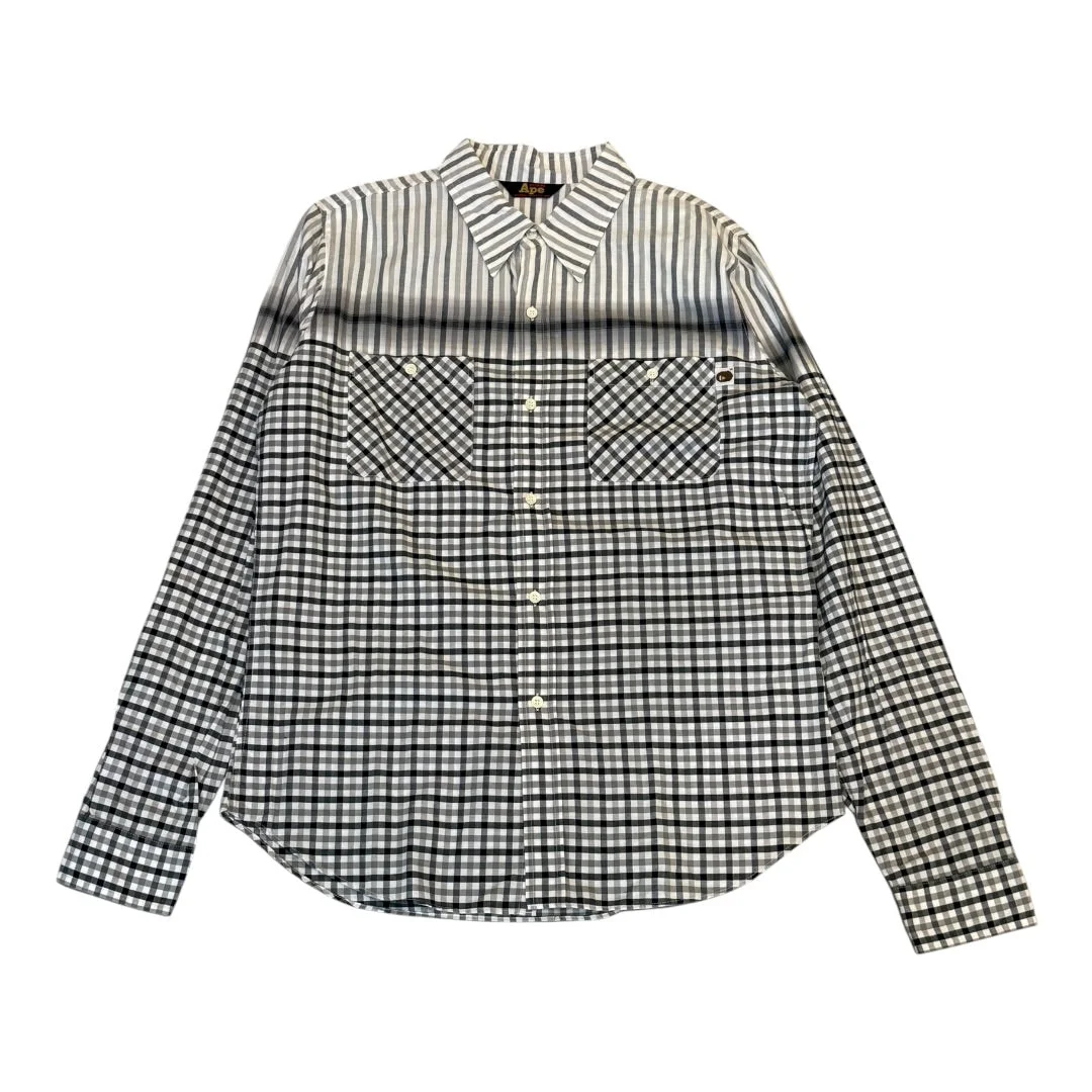 Late 90’s Bape Fading Check Shirt, tagged size L, no flaws. Measures 17.5 shoulders 22 pit to pit 26.5 sleeves 27 length. In excellent condition for age, featuring a traditional check pattern that fades to stripes at the chest.