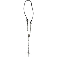 Dolce & Gabbana Rosary Chain Necklace / Bracelet. Silver tone segmented chain necklace, 2 lobster clasps connected to braided leather necklace. 22 inch diameter as necklace. Can be worn as bracelet. Made in Italy