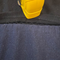 Helmut Lang (2005) Hybrid Knit in Black / Blue. Delicate stitching creates ventilation between the two knit panels. Tagged size 44 / XS fits S, measures 18.75 pit to pit 17 shoulders 28.75 sleeves 30.5 length. Manufactured in Italy by Prada Group. Missing care tags, feels like virgin wool blend. No other flaws