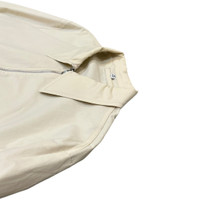 Helmut Lang SS2003 Extended Zipper Jacket size 46 in cream cotton stretch with cupro lined sleeves. Iconic Helmut Lang design from Prada Groups short ownership. Features one front pocket as well as more on the internal. Great used condition with one nearly invisible discoloration. Size 46 fits slightly large, best for M-L measures 25.5 length 21 pit to pit sleeves 25.25 shoulders 18.25