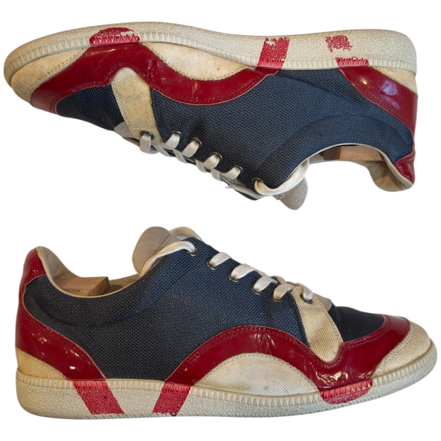00’s Maison Martin Margiela Army Trainers in Mesh / Patent Leather / Suede with Painted Sole. Tagged size 42 / US9 fits US 9-9.5. In good condition with some minor discoloration to mesh.