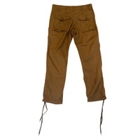 90’s / Early 00’s Final Home by Kosuke Tsumura Double-Waisted Cargo Pants with Extended Drawstring Ankle in Brown 100% cotton. Light discoloration seen in third photo, not noticeable when worn, no other flaws. measures 32 waist 10 front rise 12.5 back rise 28.5 inseam 7.5 leg opening