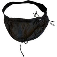 LGB Coated Nylon Sidebag in Graphite. Adjustable strap with double zipper expansion at bottom, as well as two additional double zipped compartments and one hidden snap pocket. Hole in lining of internal zip pouch, minor abrasions to coating pictured. This bag’s appearance will continue to develop with wear.