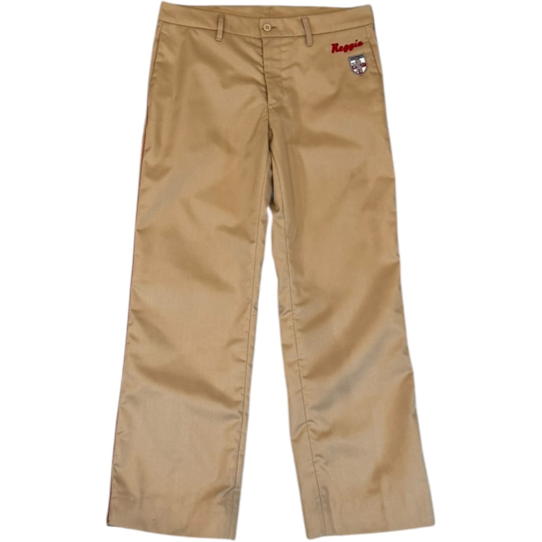 Number (N)ine SS2000 ‘Extra Heavy’ Nomex Sunday Mechanic Work Pants, size 4. These classic work pants feature an innovative Nomex fabrication, a fire resistant fabric developed by DuPont Racing in the 1960s and now commonly used in many types of protective gear. The iconic design is finished with red piping and embroidered patches. Measures 31.75 waist 9 front rise 12.5 back rise 28.5 inseam 9 leg opening