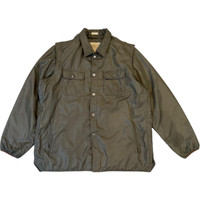 Undercover Autumn 1999 ‘Ambivalence’ Padded Small Parts Jacket, Size L. This Green Nylon jacket is a continuance of Undercover’s ‘Small Parts’ Line, an interchangeable collection of garments held together by zippers, made to have elements swapped between sets for new and unique combinations. Tagged L, measures 26 pit to pit 19 shoulders 25.5 sleeves 26.75 length. Some minor discoloration due to age, mainly seen on left arm in first photo.