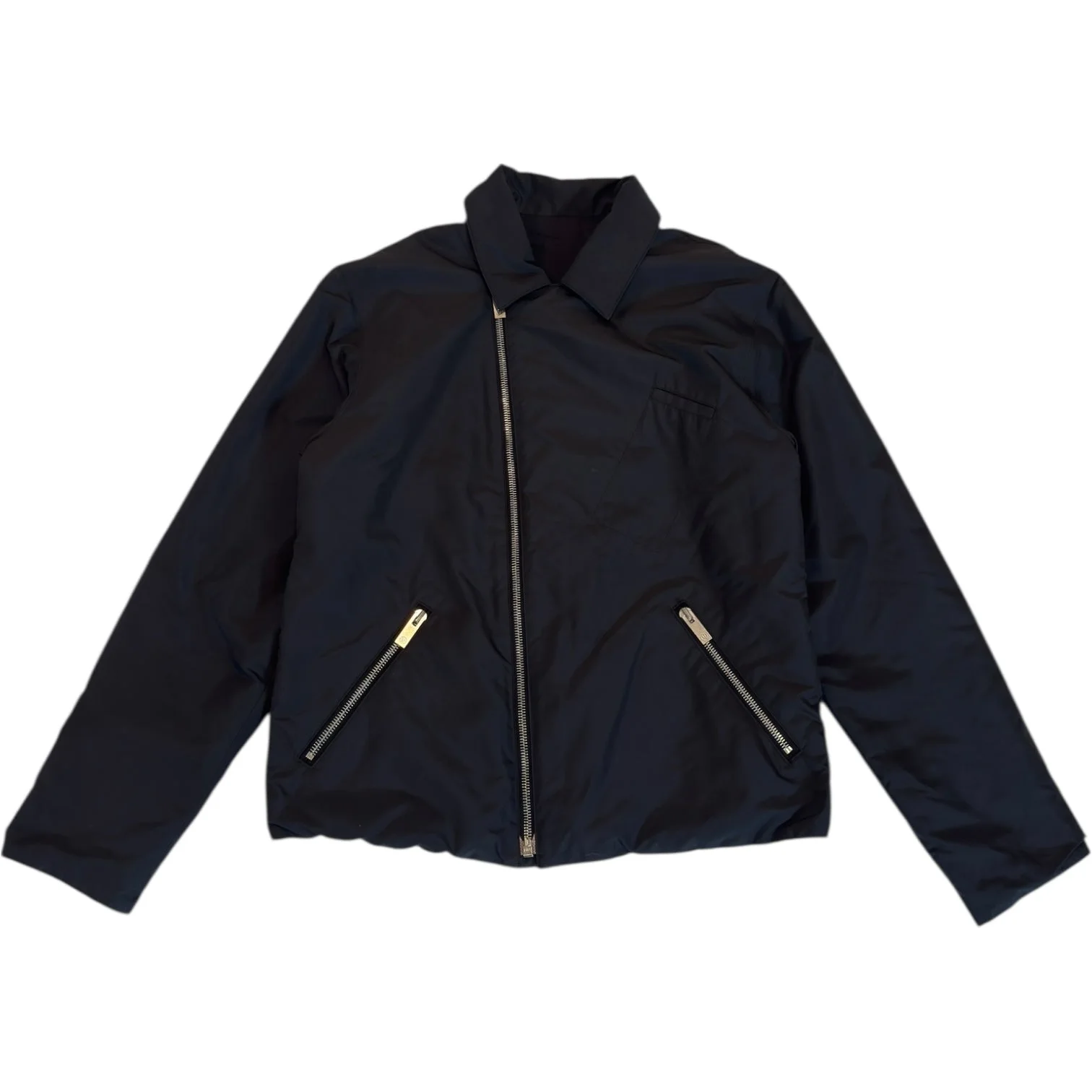 Undercover Autumn 2001 ‘DAVF’ Motorcycle Jacket in Black Padded Nylon, tagged size Free fits like S measures 19.75 pit to pit 16.75 shoulders 22 sleeves 24 length. In great used condition, missing seasonal neck tag.