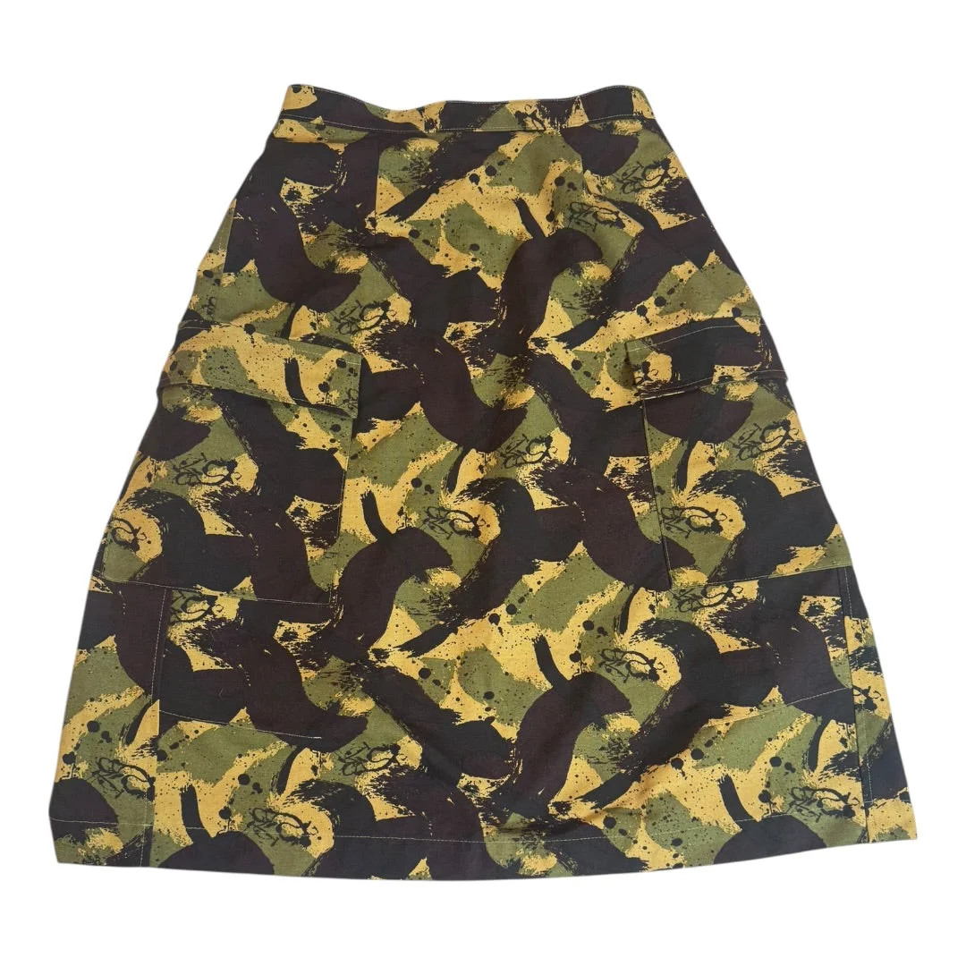 Spring 2000 Undercover x Wtaps ‘Uparmored Council’ x NGAP Layered Cargo Apron Skirt in Futura Brush Camo Canvas, tagged size Medium. This rare piece features a four way collaboration, with a unique ‘apron’ construction hanging from the top of the internal skirt. Measures 25 waist 25 length, in perfect condition with the exception of some tag fading.