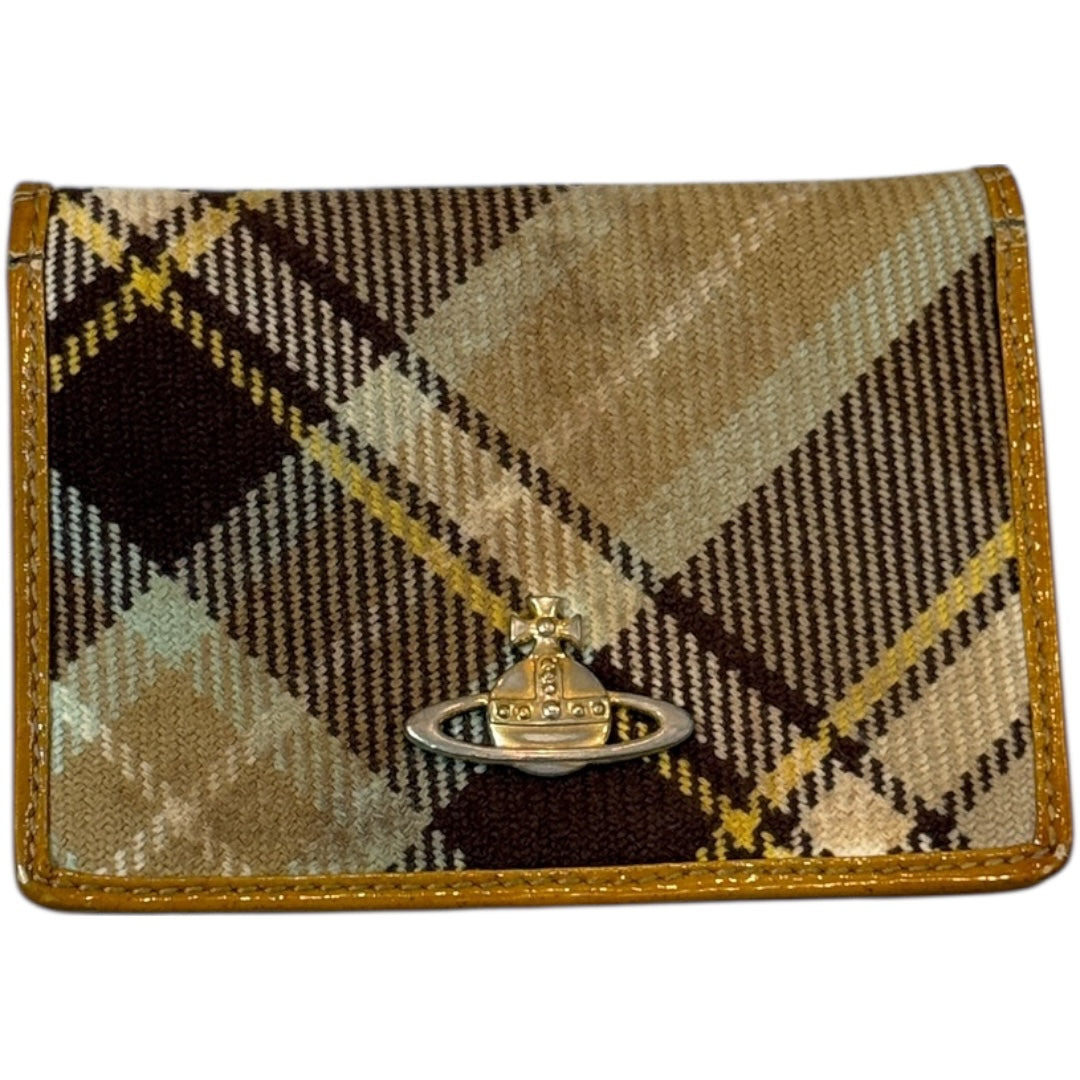 Vivienne Westwood Plaid Wallet in used condition, some cracking near edges shown in photos and reflected in price.