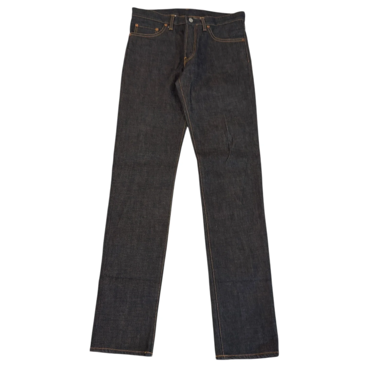 Yohji Yamamoto Autumn 2015 Raw Japanese Denim, in Blue Grey, tagged size 2. Measures 34 waist 10.5 rise 13.5 back rise 37.25 inseam 7 leg opening. Unworn / unused, woven label at rear, selvedge detailing at fly. Made in Japan.