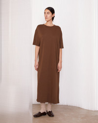 Short sleeve long jersey dress. Loose fit. Self fabric collar. Color developped by Officine Generale. Made in Portugal. - 50% cotton 50% modal - Loose fit - Short sleeve long jersey dress - Self fabric collar - Color developped by Officine Generale - Machine washable with similar colors, 30° - Made in Portugal This product sizes normally, we advise you to take your usual size. Our model measures 1m78 and wears a size S. Exists in sizes XS to XXL. REF: W25WTEE202PRE