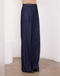 Double pleats high waisted pants with wide leg. Loose fit. Italian pockets and welt back pockets. Turned-up hem. Garment wash. Made of a cotton denim. Made in Tunisia. - 80% cotton 20% recycled cotton - Loose fit - Double pleats high waisted pants - Wide leg - Italian pockets and welt back pockets - Turned-up hem - Garment wash - Made of a cotton denim - Machine washable with similar colors, 30° - Made in Tunisia This product sizes normally, we advise you to take your usual size. Our model measures 1m78 and wears a size 36. Exists in sizes 34 to 44. REF: W25WCHN700PRE