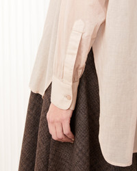 Long sleeve shirt with a long sharp shirt collar. Loose fit. Long shirt. Hidden button placket. Curved hem with the back longer than the front. Straight back yoke with gathers next to the sides. - 100% Cotton - Loose fit - Long sharp shirt collar - Hidden button placket - Straight back yoke with gathers next to the sides - Curved hem with the back longer than the front - Garment wash - Made in India - Machine washable with similar colors, 30°. This product sizes normally, we advise you to take your usual size. Our model measures 1m75 and wears a size S. Exists in sizes XS to XL. REF: W25WSHI008