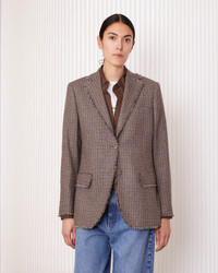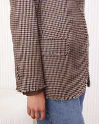 Single breasted two buttons jacket. Classic fit. Soft shoulder. Four-holes fabric-covered buttons. Flap pockets, double vents at back. Fringes on collar, lapel and front. Houndstooth pattern. Italian fabric. Made in Portugal. - 70% wool 30% polyamide - Classic fit - Single breasted two buttons jacket - Soft shoulder - Four-holes fabric-covered buttons - Flap pockets - Double vents at back - Fringes on collar, lapel and front - Houndstooth pattern - Italian fabric - Dry cleaning only - Made in Portugal This product sizes normally, we advise you to take your usual size. Our model measures 1m78 and wears a size 36. Exists in sizes 34 to 44. REF: W25WTLG400PRE