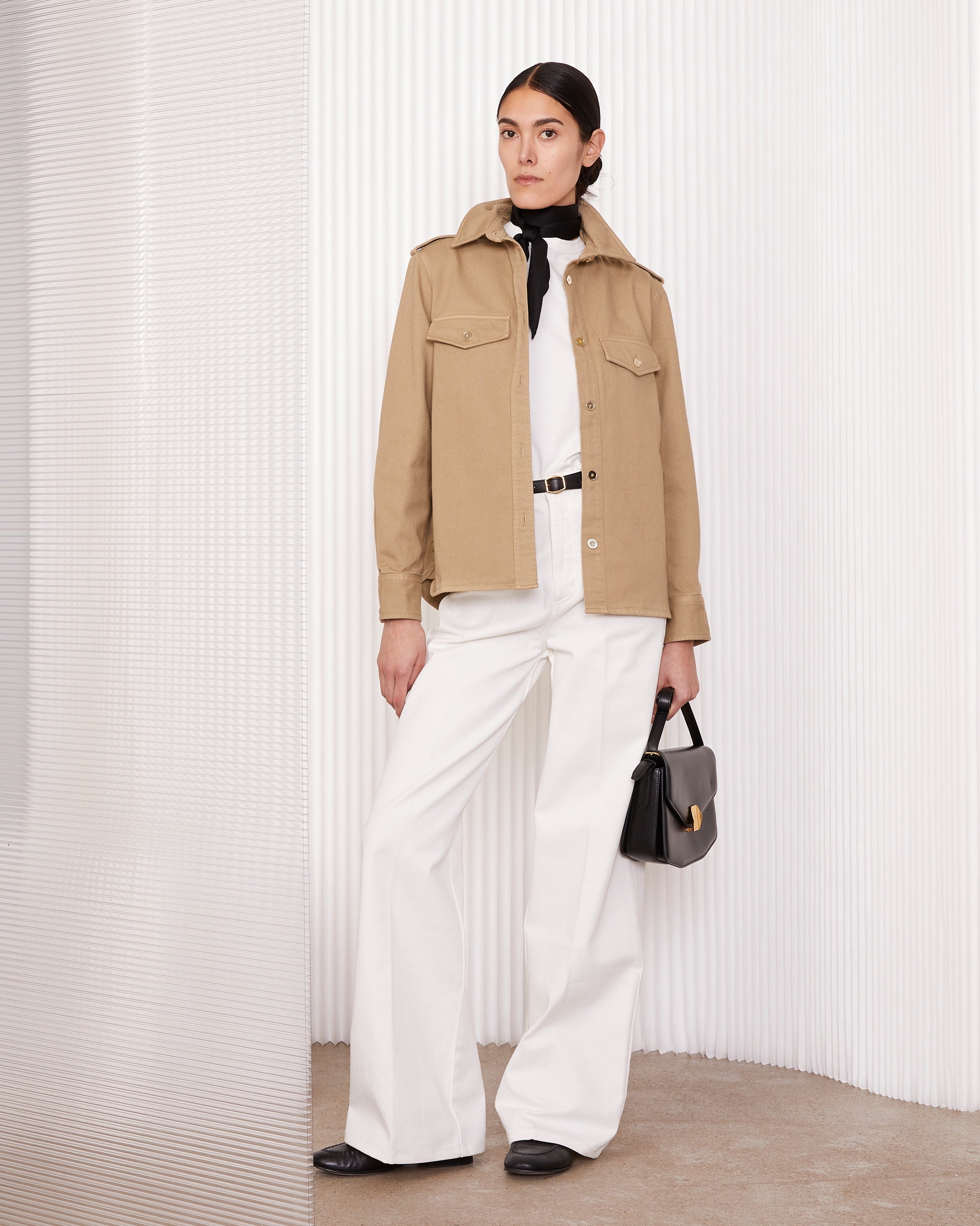 Long sleeves overshirt. Classic fit. Classic shirt collar. Buttoned placket. Buttoned tab on shoulder. Flap chest pockets. Buttoned cuff with cuff placket. Gold buttons. V-Shaped back yoke. Cotton twill. Made in Tunisia. - 100% cotton - Classic fit - Long sleeves overshirt - Classic shirt collar - Buttoned placket - Buttoned tab on shoulder - Flap chest pockets - Buttoned cuff with cuff placket - Gold buttons - V-Shaped back yoke - Cotton twill - Machine washable with similar colors, 30° - Made in Tunisia This product sizes normally, we advise you to take your usual size. Our model measures 1m78 and wears a size S. Exists in sizes XS to XXL. REF: W25WOVS070PRE