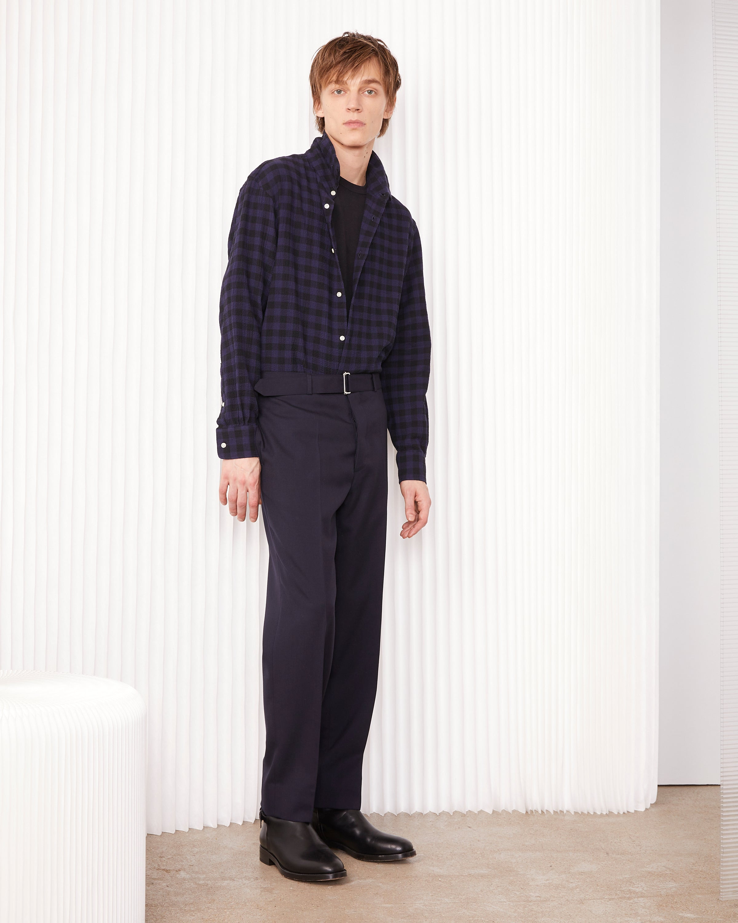 Long-sleeved, loose-fitting shirt. French collar and gathered pleats at cuffs. Straight hem. - 98% cotton 2% elastane - French collar - Front buttoned placket - Gathered pleats at cuffs - Side slits - Straight bottom - Western back yoke detail - Garment wash - Made in Portugal - Machine washable with similar colors, 30° This product sizes normally, we advise you to take your usual size. Our model measures 1m86 and wears a size S. Exists in sizes XS to XXL. REF: W25MSHI016