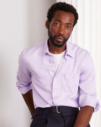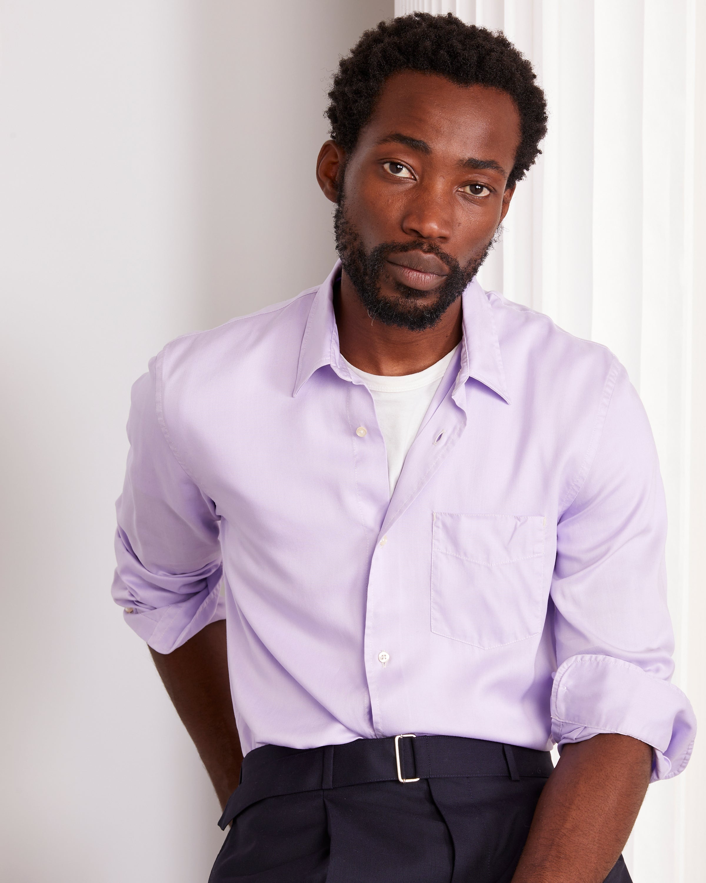 Long sleeves shirt with french collar. Gathered pleats at the cuffs. Contrasted thread. Body lenght is slightly longer than our regular shirt. Left breast flap patch pocket. Straight bottom. Garment dye. - 100% lyocell - French collar - Gathered pleats on cuffs. - Chest pocket - Contrast stitching details - Straight bottom - Slightly loose fit - Garment dye - Machine washable with similar colors, 30° - Made in Turkiye This product sizes normally, we advise you to take your usual size. Our model measures 1m86 and wears a size S. Exists in sizes XS to XXL. REF: W25MSHI005PRE