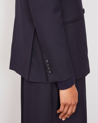 Double breasted four buttons jacket. Classic fit. Regular padding at shoulder. Welt pockets. Double vents at back. Four holes covered buttons. Matching pants, skirt and top available. - 100% Virgin wool - Classic fit - Double-breasted four buttons jacket - Four-holes fabric-covered buttons - Piped pockets - Double vents at back - Matching pants, skirt and top available - Italian fabric - Made in Portugal - Machine washable with great care. However, we recommend dry cleaning to ensure a long and beautiful life for your sweater. This product sizes normally, we advise you to take your usual size. Our model measures 1m75 and wears a size 36. Exists in size 34 to 44. REF: W25WTLG409