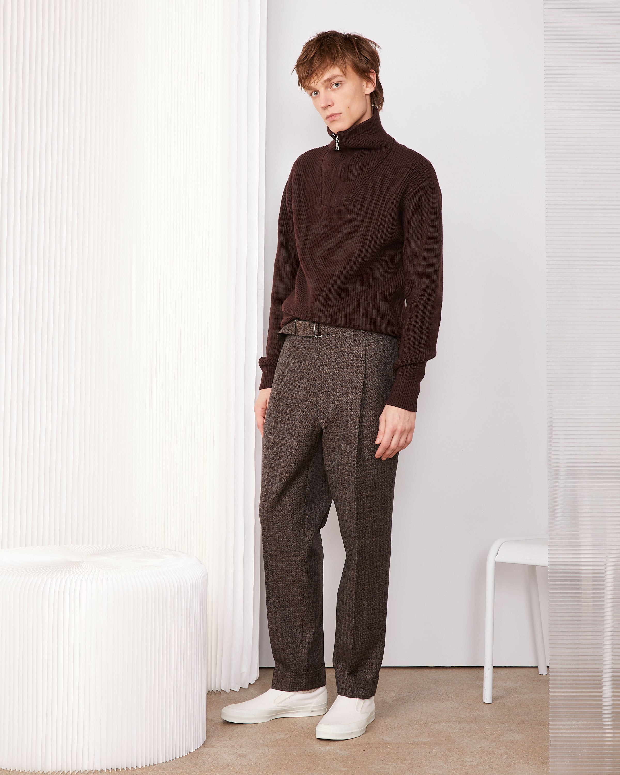 Cropped trousers with one pleat. Tapered leg with cuffs at the hem. Side seam pockets and double welt buttoned back pockets. Fly with hidden zip fastening. Covered four-holes buttons. Removable fabric belt. Lined from the waist to the knee. Jacket available in the same fabric. - 100% virgin wool - One pleat on the front - Two side seam pockets - Hidden zipped fly - Two buttoned double welt pockets at the back - Removable fabric belt - Lined from the belt to the knee in the front - 4 holes covered buttons - Matching jacket available - Made in Portugal - Dry cleaning only This product sizes normally, we advise you to take your usual size. Our model measures 1m86 and wears a size 48. Exists in sizes 44 to 56. REF: W25MTLG451